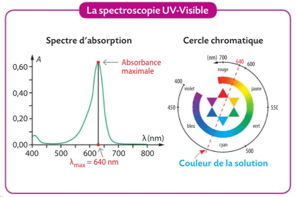 En 1ère, nous pouvons nous inspirer de cette façon de procéder pour trouver la concentration inconnue d’une solution, et en améliorer la précision grace à la mesure de l’absorbante et à la loi de Beer-Lambert.